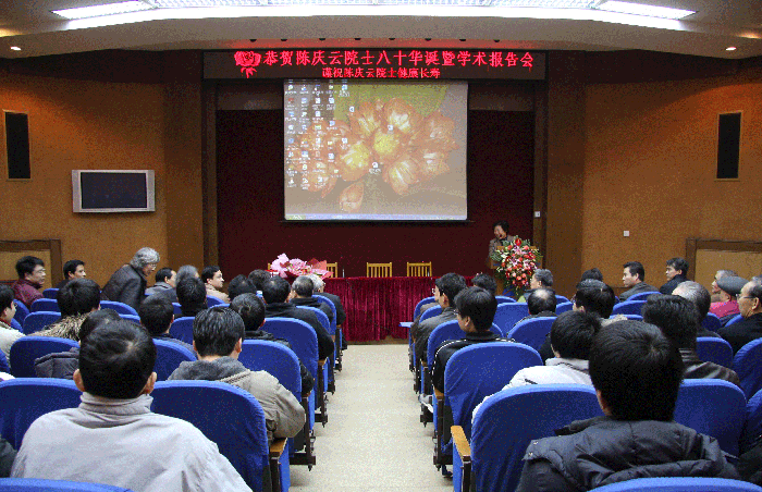 所黨委書記郟靜芳主持慶賀會,她說:今天各位領(lǐng)導(dǎo)、院士和研究員、各位同仁和同學(xué),歡聚在這里共同慶賀陳慶云院士八十華誕,讓我們以最熱烈的掌聲,歡迎今天來參加陳慶云院士八十華誕慶賀會的各位領(lǐng)導(dǎo)、嘉賓……。