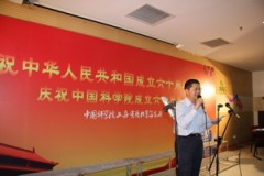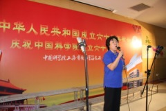 馬大為副所長(zhǎng)宣布歌會(huì)開始,在雄壯的中華人民共和國(guó)國(guó)歌聲中,“熱烈慶祝中華人民共和國(guó)成立六十周年歌會(huì)”拉開帷幕。首先,黨委書記郟靜芳同志為歌會(huì)致辭:我們歡聚一堂,舉行慶祝中華人民共和國(guó)成立六十周年歌會(huì),共慶我們偉大的祖國(guó)60華誕。60年前,毛澤東主席在天安門廣場(chǎng)升起了第一面五星紅旗,宣告了中華人民共和國(guó)成立了,開啟了中國(guó)歷史的新紀(jì)元。60年來(lái),中國(guó)共產(chǎn)黨領(lǐng)導(dǎo)全國(guó)人民以一往無(wú)前的進(jìn)取精神和波瀾壯闊的創(chuàng)新實(shí)踐,譜寫了中華民族自強(qiáng)不息、頑強(qiáng)奮進(jìn)的壯麗詩(shī)篇。今年也是中國(guó)科學(xué)院建院60周年,明年我們即將迎來(lái)有機(jī)所建所60周年。60年來(lái),我們有機(jī)所的職工和廣大的科技工作者一起,積極投身建設(shè)新中國(guó)的偉大事業(yè),面向國(guó)家戰(zhàn)略需求,面向科技發(fā)展前沿,為我國(guó)經(jīng)濟(jì)發(fā)展、社會(huì)進(jìn)步和國(guó)防安全做出了重要的貢獻(xiàn)。
