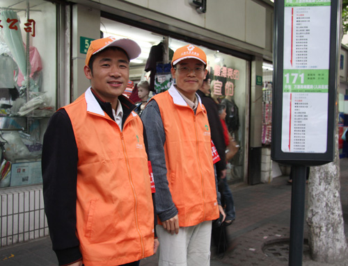 5月9號,研究生部黨支部的公交車站守護工作正式展開。周一到周三上午的課程與守護任務(wù)沖突,研究生部的四名黨員老師作為緊急情況應(yīng)對預(yù)備力量關(guān)鍵時刻挺身而出,主動承擔(dān)了后半時段的守護任務(wù)。在一個星期的公交車站守護工作中,黨員和積極分子志愿者按時到達(dá)車站,監(jiān)督車站周圍的安全狀況,回答路人的詢問,幫助車站周圍有困難的群眾,為平安世博貢獻了一份力量。在這期間,鄭志堯同學(xué)雖然眼睛犯有急性變應(yīng)性結(jié)膜炎,眼里充滿血絲,卻仍然在清晨準(zhǔn)時出現(xiàn)在公交車站;陳超同學(xué)恰巧在值班當(dāng)天有基礎(chǔ)實驗,實驗到傍晚四點半才結(jié)束,雖然晚上三點安排了實驗室的守夜,他卻堅持要去公交車站守護,來不及洗個臉吃飯,他便匆匆地趕往車站值班···