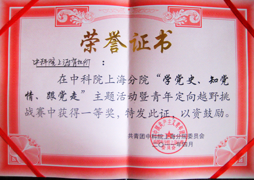 在紀念五四運動92周年,迎接建黨90周年之際,上海有機所團委在研究生部的大力支持下,積極組織了我所十多名青年黨、團員于4月29日參加了由上海分院團委、上海分院體育協(xié)會在辰山植物園聯(lián)合舉行的“學黨史、知黨情、跟黨走”主題活動暨“激情挑戰(zhàn)路、濃濃愛黨情”青年定向越野挑戰(zhàn)賽,隊員們通過團結協(xié)作,默契配合,最終奪得了比賽一等獎,為有機所爭得榮譽的同時,也體現(xiàn)了有機所廣大青年與學生的激情與活力。