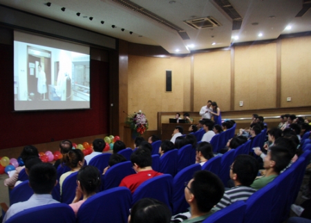 頒獎晚會展映了來自有機所生命、金屬、現(xiàn)代高分子、機關、研一等十個團隊的微電影作品,高潮迭起,精彩紛呈。微電影作品《飛揚吧,青春》、《又一年Titanic》情節(jié)幽默詼諧,將青年科研人員的愛情觀和在科研中不畏失敗的精神巧妙結合,讓人在歡笑聲中堅定了追求科學的理想和信念; 《十八歲》、《后青春期的詩》則以紀錄片的形式,走訪了在有機所學習、工作著的不同人群,通過他們的青春追憶、感悟和寄語,鼓勵年輕人珍惜青春、加倍努力;