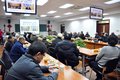 元月25日上午2013年新春團(tuán)拜會(huì)在有機(jī)所君謀樓二樓第一教室拉開了帷幕。所領(lǐng)導(dǎo)、有關(guān)部門領(lǐng)導(dǎo)、退休正教授、老領(lǐng)導(dǎo)、老干部、院士等共80余人出席了會(huì)議。會(huì)議由所黨委書記郟靜芳主持,郟書記首先代表有機(jī)所向各位老領(lǐng)導(dǎo)、老同志致以新年的祝賀,祝大家身體健康,闔家幸福,事事如意。并向大家通報(bào)了中科院2013工作會(huì)議及白院長關(guān)于《全面貫徹落實(shí)黨的十八大精神,建立三位一體的中國科學(xué)院》報(bào)告的主要精神,并強(qiáng)調(diào)指出,要學(xué)習(xí)貫徹好院工作會(huì)議精神,增強(qiáng)責(zé)任感、危機(jī)感,全力實(shí)施好一三五戰(zhàn)略規(guī)劃落實(shí)。