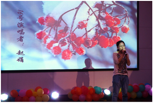 本次比賽共吸引了二十二位選手參賽,他們唱風(fēng)迥異,個性凸顯,深情熱烈,贏得觀眾一次次的掌聲和吶喊,把晚會推向一個又一個的高潮,盡顯出了有機所學(xué)子的生機與活力。其中吳文挺聲音渾厚、富有磁性,散發(fā)出一種滲透到靈魂深處的震撼,一首《rolling in thedeep》贏得了在場觀眾的陣陣掌聲。吳浩和徐人奇深情演繹,聲音打動人心。杜小勇感情奔放熱烈。演唱中走下臺與觀眾互動,強烈的節(jié)奏和有力的唱腔讓現(xiàn)場沸騰。劉暢靚麗的外形和動聽的嗓音令大家眼前一亮。張翔臺風(fēng)自然,以一種輕松的方式演繹出高超的歌唱藝術(shù)。開場視頻中單口相聲表演者李志鵬更是以一首經(jīng)典歌曲《敢問路在何方》震撼全場。比賽過程中,還穿插了有趣的小游戲,嘉賓表演,現(xiàn)場抽獎等環(huán)節(jié),使比賽更加妙趣橫生,輕松有趣。