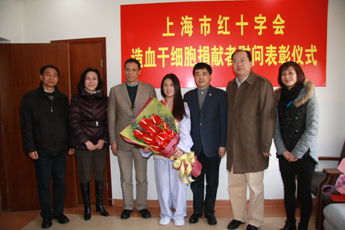 12月16日上午,上海市紅十字會、團市委、區(qū)紅會和有機所領導前往第一人民醫(yī)院慰問了馮琳同志,并向她頒發(fā)了“捐獻造血干細胞”榮譽證書和榮譽獎牌,以及上海市優(yōu)秀青年志愿者榮譽證書?!澳軌虮M自己的微薄之力挽救一條幼小的生命,我感覺做了一件很有意義的事情”,馮琳在捐獻現(xiàn)場表達了自己的心聲。