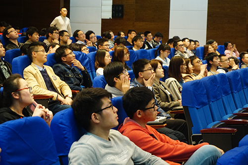 講座中,呂龍運(yùn)用幽默的語言和生動(dòng)實(shí)例,講述了如何將對(duì)化學(xué)的興趣愛好與科研創(chuàng)新工作緊密結(jié)合,并發(fā)展成為人生追求的親身經(jīng)歷。呂龍介紹,他所涉及的各個(gè)領(lǐng)域,無一不是憑借著自己的興趣開始,然后靜下心來努力鉆研,克服困難,保持樂觀,最后才取得成功的。講座的過程中,呂龍多次提及“Be happy”的主題,強(qiáng)調(diào)快樂科研的重要性。選擇了自己喜歡的道路本來就是一件幸福的事,科研過程中遇到挫折是常有的,但我們不能因此而失去信心,更不能忘記做科研的初心,不忘初心,心懷理想,保持積極態(tài)度,砥礪科研真知。活動(dòng)的最后,呂老師對(duì)我們新一代年輕人提出了期許,激勵(lì)我們一定要 “努力努力再努力,勤奮勤奮再勤奮”。