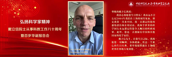2021年諾貝爾化學(xué)獎得主Benjamin List教授和著名化學(xué)家Eiichi Nakamura教授以視頻形式回憶與戴立信院士的初次相識和在學(xué)術(shù)交流過程中建立的深厚友誼,并向戴立信院士表達(dá)衷心的祝福。 ???? ?