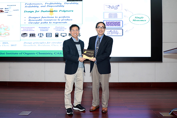 游書力研究員向Eugene Chen教授頒發(fā)有機所交叉學科講座榮譽獎牌