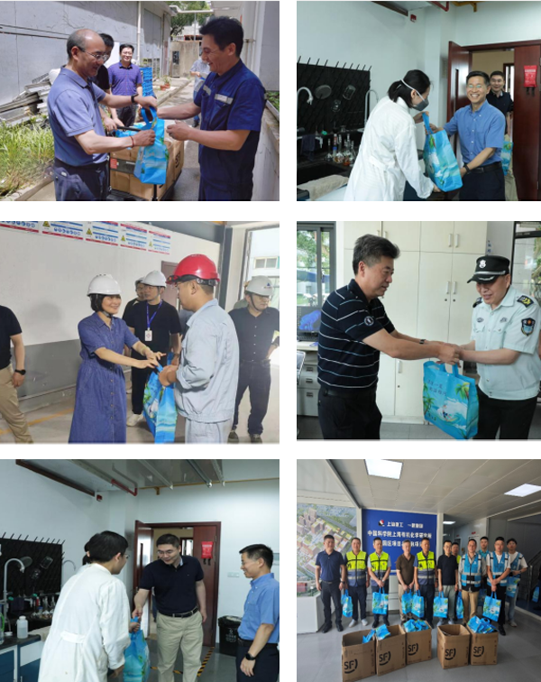 近期上海連續(xù)發(fā)布多個(gè)高溫預(yù)警,2024年7月15日-25日,所長唐勇、黨委副書記(主持工作)游書力、副所長劉菲、紀(jì)委書記石巖森、工會(huì)主席張新剛、工會(huì)副主席陸海峰等分別帶隊(duì)走訪了楓林園區(qū)玻璃維修車間、公共技術(shù)服務(wù)中心、高壓釜房、倉庫、后勤和安全部門以及金山中試生產(chǎn)基地、臨港園區(qū)在建工地,為堅(jiān)守在高溫工作崗位的職工送去了清涼慰問。