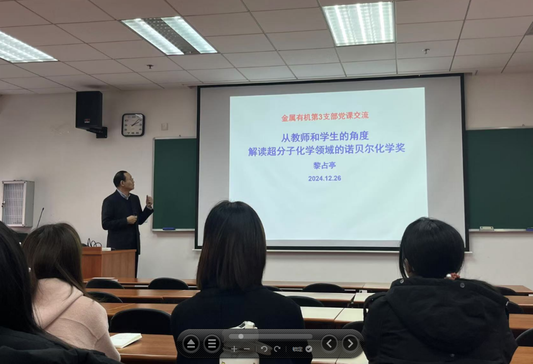 黨支部?jī)?yōu)秀黨員科學(xué)家黎占亭同志受邀作專題黨課,他以《從教師和學(xué)生角度,解讀超分子化學(xué)領(lǐng)域的諾貝爾化學(xué)獎(jiǎng)》為主題,給全支部黨員帶來(lái)了一場(chǎng)精彩的人生和科研的經(jīng)驗(yàn)感悟分享報(bào)告。
