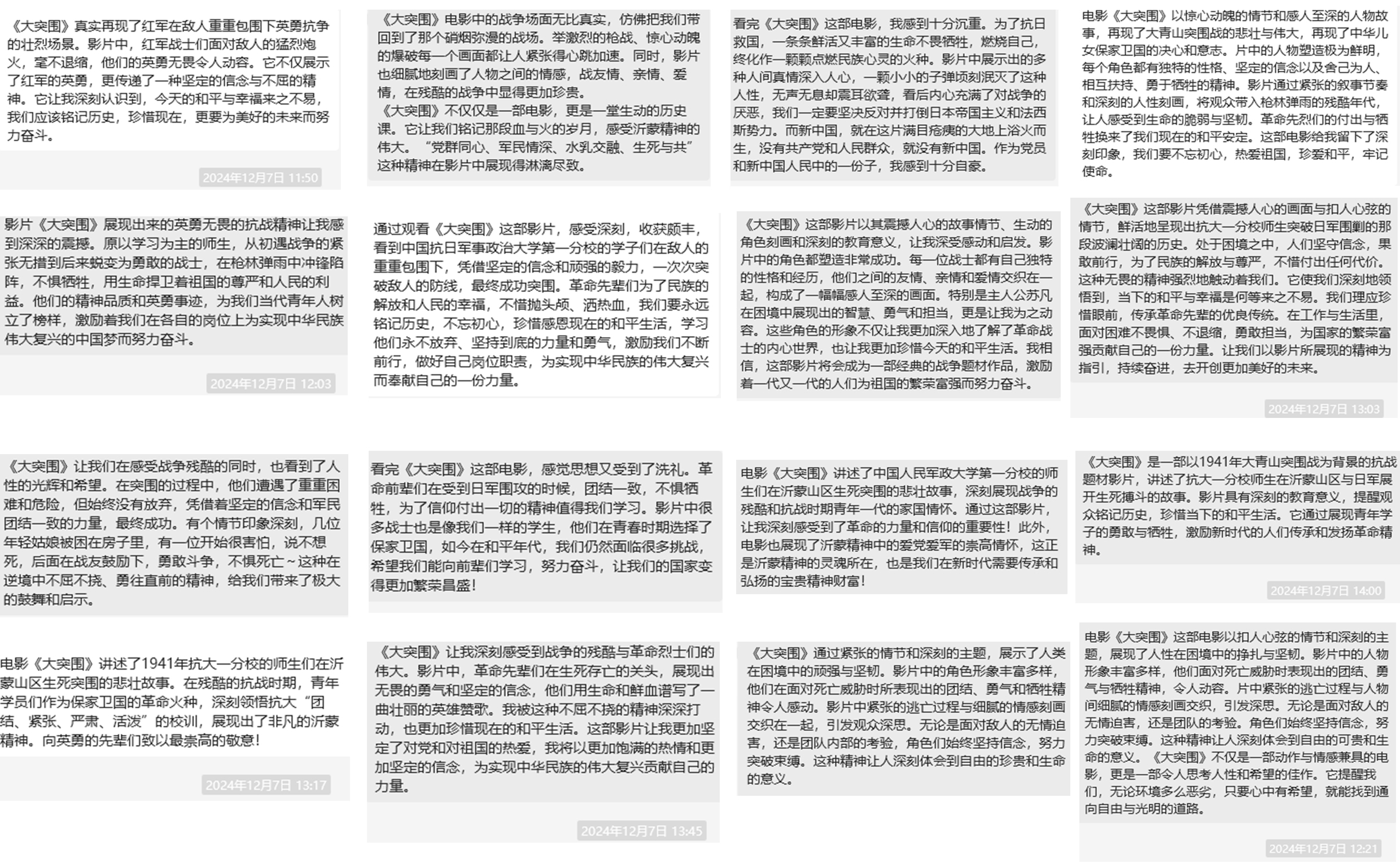 12月07日周六早上,全體支部黨員響應號召,利用周末休息時間,集中觀看愛國主義紅色電影黨課《大突圍》。該電影講述了中國抗日軍事政治大學第一分校的師生們在沂蒙山區(qū)生死突圍的悲壯故事。它以驚心動魄的情節(jié)和感人至深的人物故事,展現(xiàn)大青山突圍戰(zhàn)的悲壯與偉大,深刻展現(xiàn)抗戰(zhàn)時期青年一代堅定的理想信念和家國情懷,也再現(xiàn)了中華兒女保家衛(wèi)國的決心和意志?!洞笸粐凡粌H僅是一部電影,更是一堂生動的黨史課,它讓我們銘記那段血與火的歲月,感受“黨群同心、軍民情深、水乳交融、生死與共”沂蒙精神的偉大。