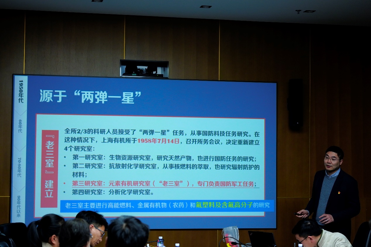 會(huì)前,在上海有機(jī)所先進(jìn)氟氮材料重點(diǎn)實(shí)驗(yàn)室副主任、第一黨支部兼黨總支書(shū)記張新剛的陪同下,東華大學(xué)化學(xué)與化工學(xué)院的黨員教師們參觀了上海有機(jī)所所史陳列館。通過(guò)講解員的專業(yè)講解,大家詳細(xì)了解了有機(jī)所的發(fā)展史以及老一輩有機(jī)化學(xué)家們的科學(xué)家精神。