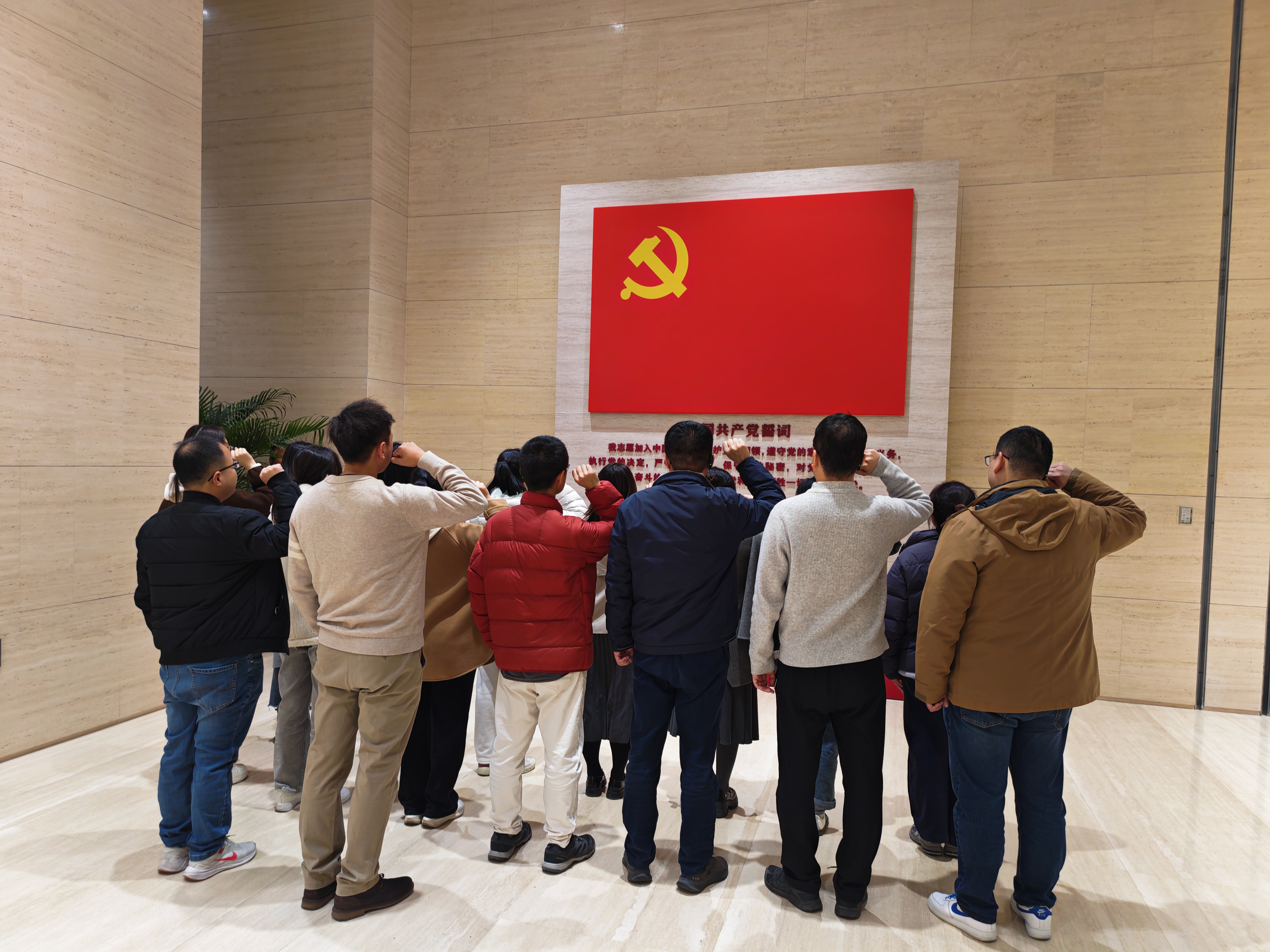 參觀結(jié)束后,全體黨員來到了宣誓大廳。面對著鮮紅的中國共產(chǎn)黨黨旗,在領(lǐng)誓人的帶領(lǐng)下,大家高舉右拳,神情莊重,重溫入黨誓詞。