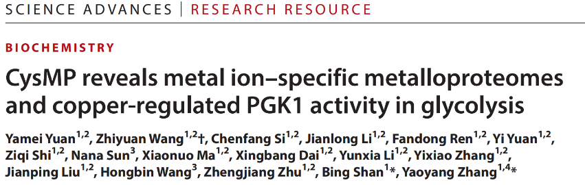 Science Advances | 上海有機所交叉中心開發(fā)CysMP方法繪制11種金屬離子蛋白質(zhì)組圖譜并揭示銅離子調(diào)控PGK1新機制