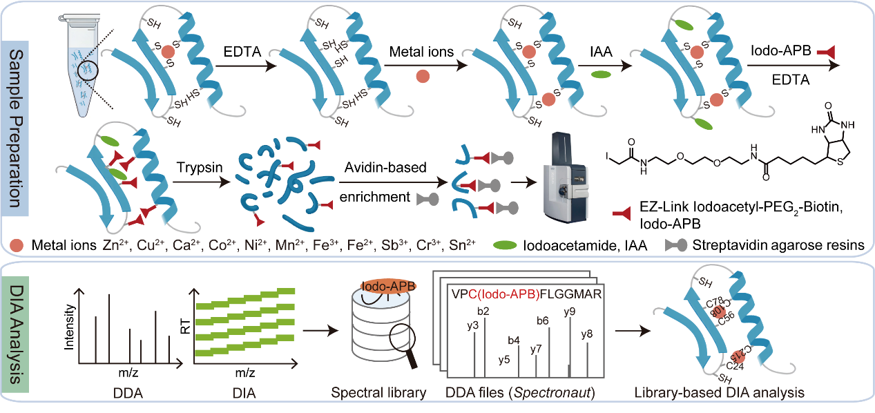 2025年10月17日,中國科學院上海有機化學研究所生物與化學交叉研究中心張耀陽研究員團隊在 Science Advances雜志發(fā)表題為 CysMP reveals metal ion-specific metalloproteomes and copper-regulated PGK1 activity in glycolysis的論文,首次開發(fā)了一種全新的半胱氨酸特異性金屬蛋白組分析策略——Cysteine-centered Metalloproteome Profiling(CysMP)(圖1)。該方法為解碼人體金屬蛋白質(zhì)組提供了高靈敏、高通量和高特異性的技術支持,并為系統(tǒng)研究金屬蛋白質(zhì)組提供了創(chuàng)新性解決方案。
