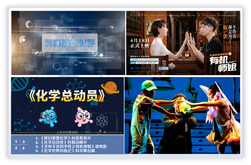 《無所不在的化學》系列微電影。2021年拍攝上映了“無所不在的化學”系列之《無所不在的手性之有機師姐》微電影,該影片對“手性”知識進行了主動科普,引導公眾參與到科學理解的“雙向”過程中。微電影在上??破站W(wǎng)和Bilibili網(wǎng)站上首播點擊量超過35萬,目前全網(wǎng)的平臺的累計瀏覽量已超過120萬次。同系列第二部微電影《無所不在的氟》已于2023年8月拍攝完畢,正在剪輯制作中,該電影是圍繞“氟”這一重要的元素,向大眾,尤其是青少年普及“氟”的科學知識,展現(xiàn)氟化學發(fā)展歷程中的科學家精神、愛國情懷等。